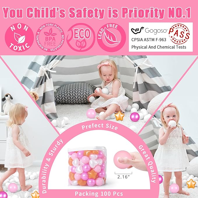 - Material: Our Gogoso ball pits balls are designed with safety-fun in mind. Made from non-toxic materials for babies, toddlers, and children.
