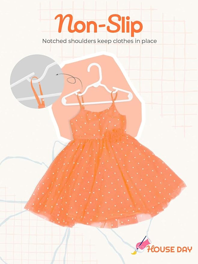 HOUSE DAY Kids Plastic Hangers for Closet, Childrens Hangers for Clothes & Baby Hangers, Toddler, and Child Clothes - Clothing, Pants, Coats, and More - Ideal for Everyday Use (White, 120 Pack)