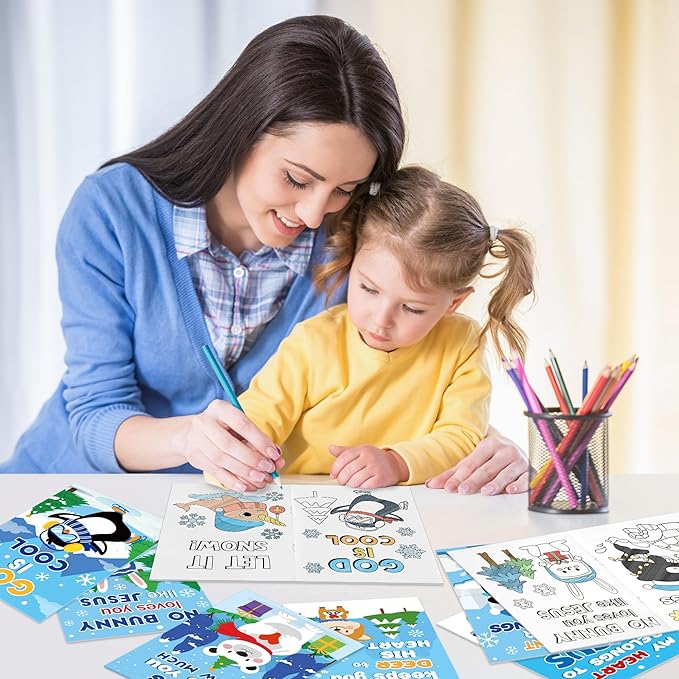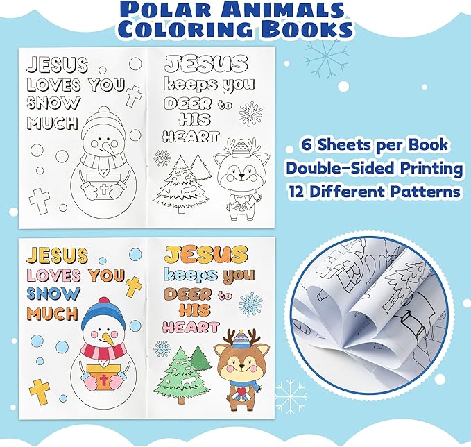 24Pcs Polar Animals Religious Coloring Books - Winter Christian DIY Color-in Pages Booklet Bulk Drawing Activity Party Supplies for Sunday School Classroom Rewards Artwork Gift for Kids