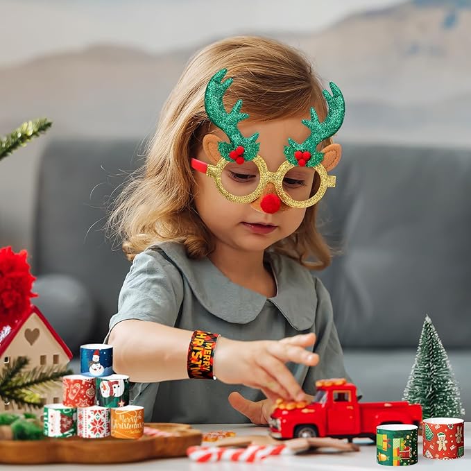 - 🎄Great Christmas Gifts - Put on the glitter glasses and slap bracelets for Party and Photo Booth. Make a face stickers are perfect for Christmas party games. The stickers can also be used to decorate gift boxes, books, greeting cards, envelopes, notebooks anywhere you like. Perfect toy gift for family, kids and your friends