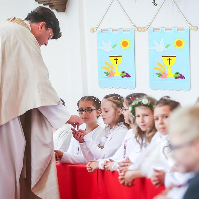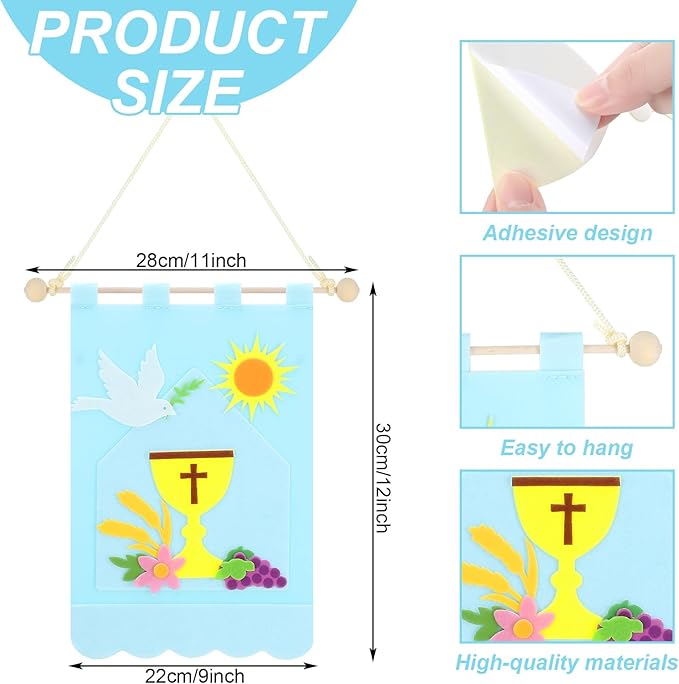 - Quality Material and Ample Content: enjoy a wholesome and enriching craft experience with our 1st communion banner kit made with quality felt material that delivers a comfortable and durable user experience; The package includes 12 first communion banner kits offering you an abundant supply for multiple uses