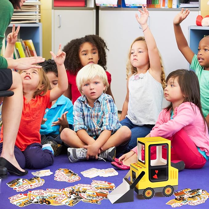 - Valentine's Day Cards and Box Set: the package includes 1 DIY excavator Valentine's Day card box, 34 Valentine's Day cards, and enough adhesive dots, which is nice for exchanging Valentine's Day cards with the whole class; Children can use the Valentine's Day box to store the Valentine's Day cards they received
