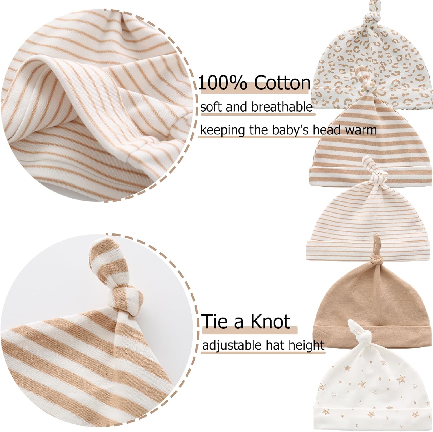 - Little Baby Warmer Set: 5 soft baby hats, 5 pairs of anti-scratch mittens, and 5 pairs of warm socks. Cute pattern theme, natural colors, very cute for matching or independent use