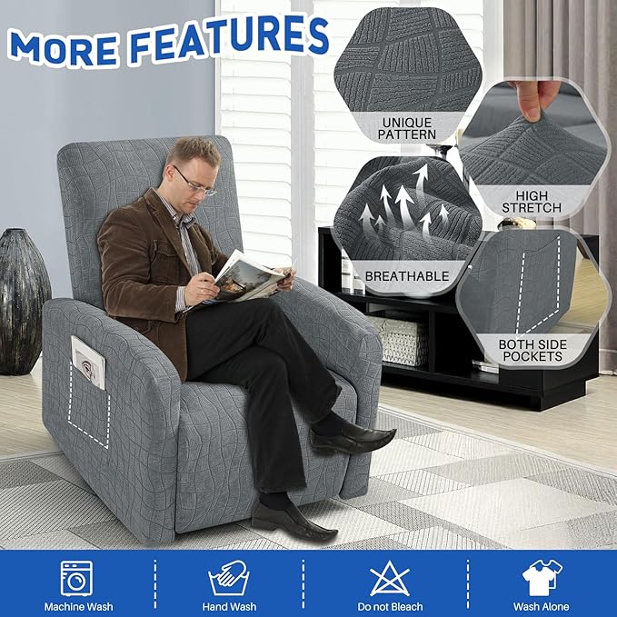 - 【EASY TO INSTALL & CARE】Simply attach the recliner set cover parts to the corresponding parts of the recliner, then tighten and secure the straps, and you'll have a brand new reclining chair cover in just 8 minutes!! WASH TIPS: Machine or hand wash in cold water or below 30℃ water. Do not machine wash with the coating facing outwards. Do not bleach or iron. Hang drying is recommended