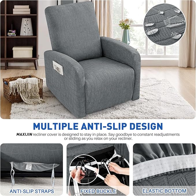 - 【DOUBLE WATERPROOF FABRIC】MAXIJIN water-resistant small recliner cover is coated with waterproof layer on the top, backed with a TPU membrane, offering double protection to ensure that our covers for recliners provide excellent waterproof and leak-proof functions. This newest waterproof feature protects your recliner from any splashes, liquid spills and daily wear and tear, thereby extending its lifespan
