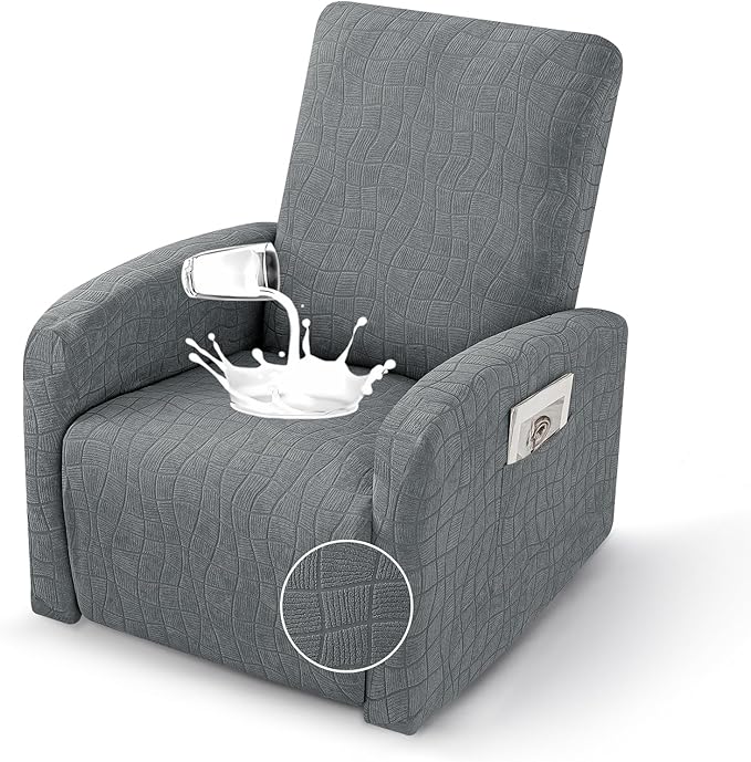 - 【3-PIECE & SIDE-POCKET DESIGN】Our 3-piece reclining chair cover includes 1 piece seat cover and 2 piece arm covers, making it easier to install than traditional 4-piece sets and fitting better than a one-piece set. The slip covers for recliners with arms feature side pocket, providing a convenient storage solution for remotes, mobile phone, magazines and other essentials you need close at hand