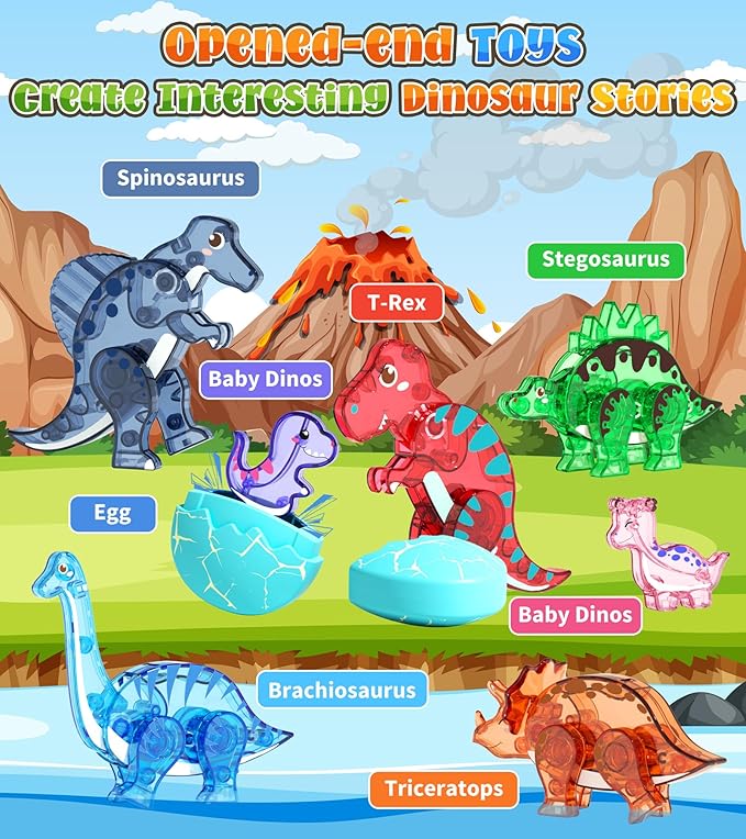 - Strong Magnet and Sturdy Plastic: Ensuring hours upon hours of safe and secure playtime for your children. Let go of worries about pieces not staying together or breaking easily – with these sturdy materials, your child can build, dismantle, and rebuild their dino world with ease.