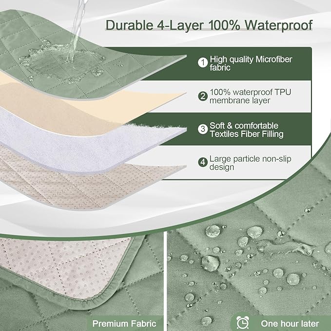 KinCam 100% Waterproof Recliner Chair Cover, Reclining Couch Covers for Pets, Dogs, Recliner Couch Slipcover Furniture Protector with Elastic Straps for Kids(23.6", Sage Green)