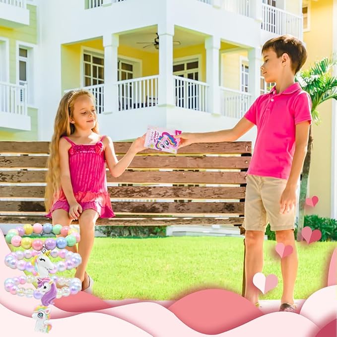 - Super Value Pack: Our Valentine’s Day Pack includes 28pcs Unicorn Bracelets in 7 colorful designs, and 28pcs Valentine’s Day Gift Card in 4 cute designs.