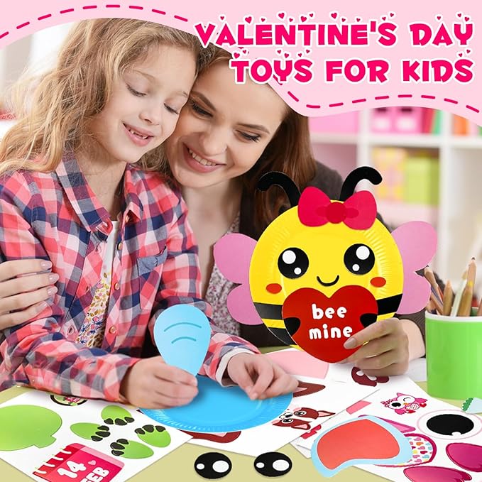- 【Perfect Valentines Crafts for Kids】The Valentines for kids crafts kit is suitable for kids age 1+ who loves DIY craft. Children can transform the simple paper plates into 3D adorable lovely animals. It is also suitable for Valentine day party favors games, preschool classroom school learning supplies, various handmade creative parties and children's at home activities