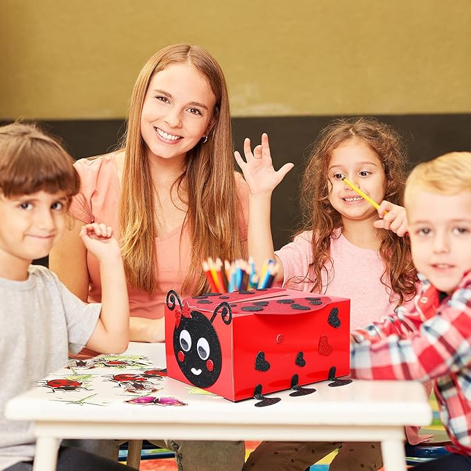 - Easy Assembly: assembled Valentine's Day cards box measures 11 x 9.1 x 5.9 inch, just stick the insect accessories to the box. We bring our own double-side adhesive. Without needing extra tools, you can easily apply the stickers to create a ladybug design