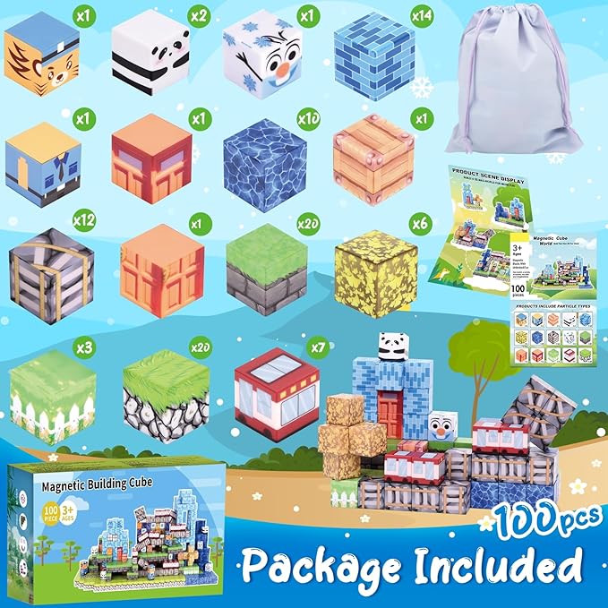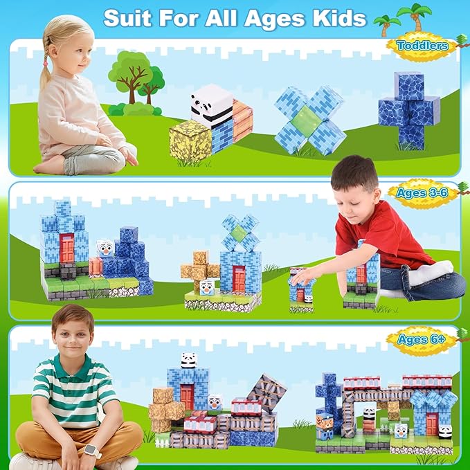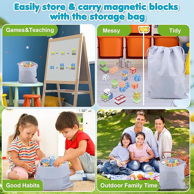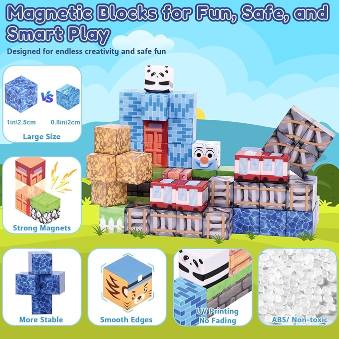 - Safe, Durable & Kid-Friendly Design:Made from premium BPA-free, non-toxic ABS plastic, these magnetic blocks are designed with safety in mind. The larger 1 inch cubes feature smooth, rounded edges for gentle handling, while securely enclosed magnets ensure a worry-free play experience. This durable design withstands frequent use and rough play, giving parents peace of mind and kids endless hours of safe fun.