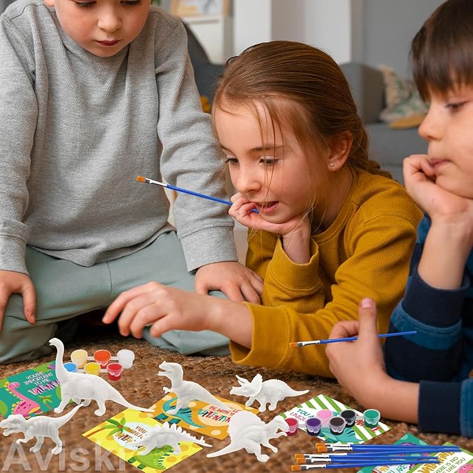 - 【VALUABLE PACK】You will get 24pcs Valentines cards, 24pcs white dinosaurs, 24pcs paint kits, 24pcs painting brushes. The cute eye-catching valentines dino painting kits are great valentine's greeting gifts for kids school exchange on Valentine's Day.