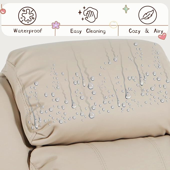 - Premium & Durable Materials: The soft seat is made of breathable PU leather and high-density sponge for added comfort. In case of spills, you can easily clean it with a damp cloth. Constructed by a sturdy solid wood frame and 4 anti-slip feet,this upholstered recliner ensures excellent stability.