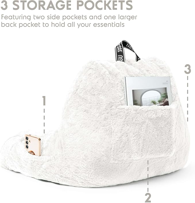 - Bonus Pockets: Featuring 3 convenient pockets, this bedrest pillow helps you create a cozy nest without needing to get up once you're settled in. The 2 small side pockets are perfect for storing your remote or phone, while the larger back pocket is ideal for magazines, books, or a tablet.
