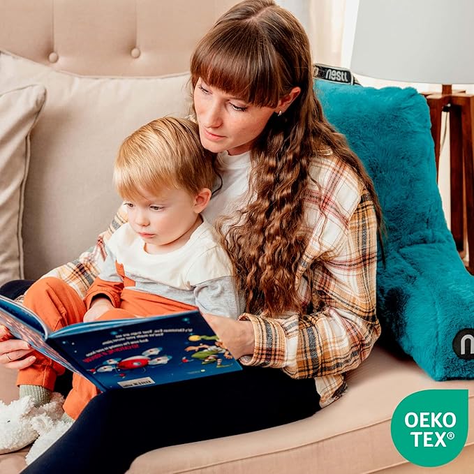 Nestl Fur Reading Pillow, Stylish Back Pillow for Bed Sitting Up, Faux Fur Bed Chair Pillow with Arms, Reading Pillows for Sitting in Bed Adult & Kids, Sit Up Back Support Pillow for Bed Rest - Teal