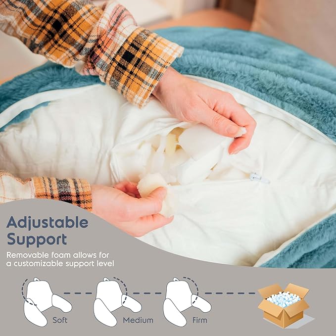 • Ultimate comfort: Experience unparalleled support while reading or watching TV with our backrest pillow for bed, designed to provide the perfect angle for relaxation and enjoyment. Featuring a plush, cozy faux fur cover, it adds an extra layer of luxury and comfort, making it ideal for both adults and kids.