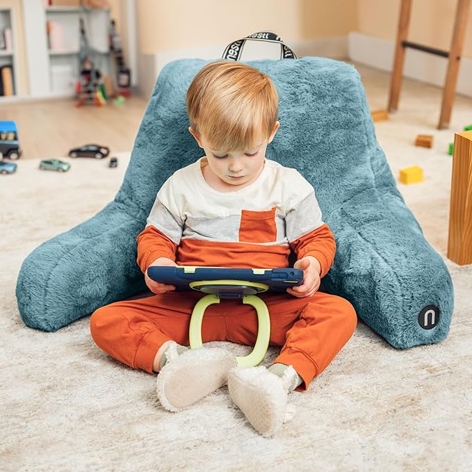 Nestl Fur Reading Pillow, Stylish Back Pillow for Bed Sitting Up, Faux Fur Bed Chair Pillow with Arms, Reading Pillows for Sitting in Bed Adult & Kids, Back Support Pillow for Bed Rest - Stone Blue