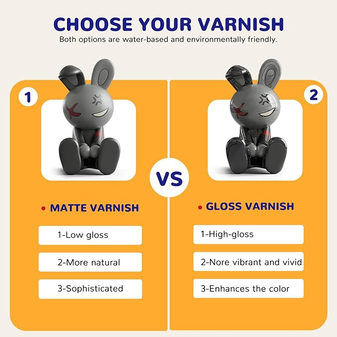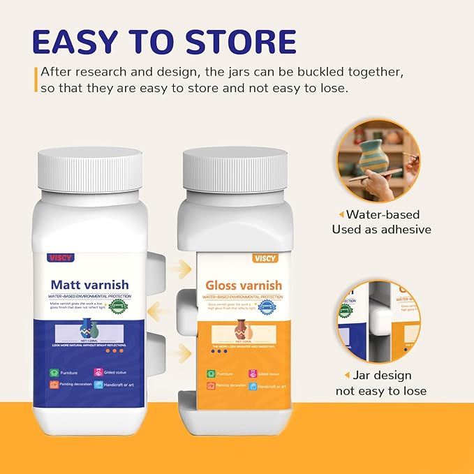 - 【Versatile Set】 This clay glaze set includes 120ml matte varnish, 120ml gloss varnish and two brushes to meet your different needs. The matte varnish has a lower sheen for a more natural, delicate effect, while the gloss varnish is high gloss for a more vibrant, vivid finish and enhanced color.