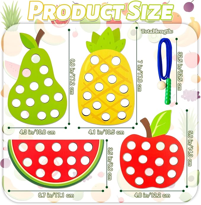 - Child Friendly Size:The size of wooden fruit threading set is suitable for small hands to hold and play with.Ensure that children play comfortably and stimulate their interest in exploring the world.