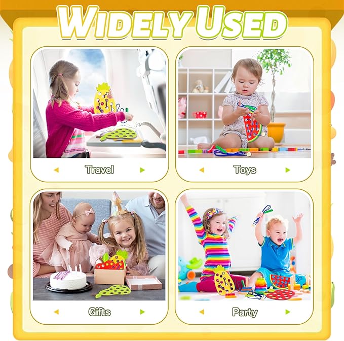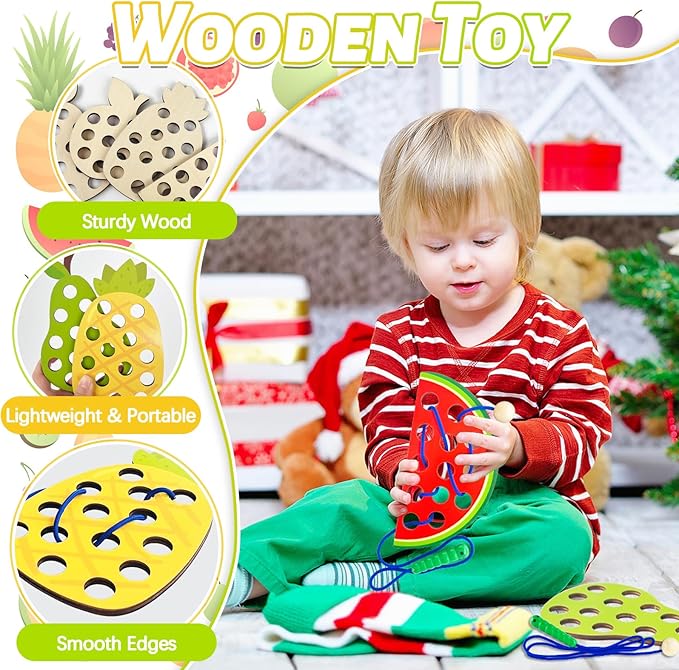 - Creative Gift:Wooden fruit threading set is an ideal gift for children.Whether it's birthday parties,holiday celebrations,or daily surprises,it can bring endless joy and learning opportunities to children.