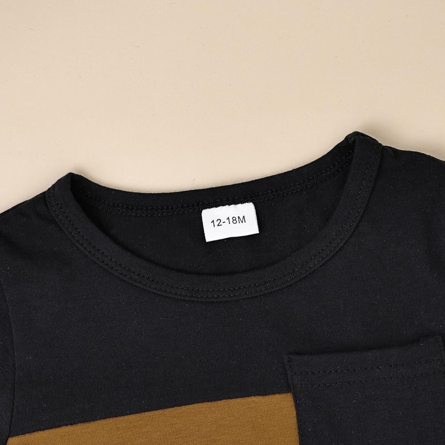 Baby Boy Clothes Toddler Boy Summer Outfits Short Sleeve Patchwork Top T-shirt & Pocket Pant Set 2 Piece 12 Months-4T