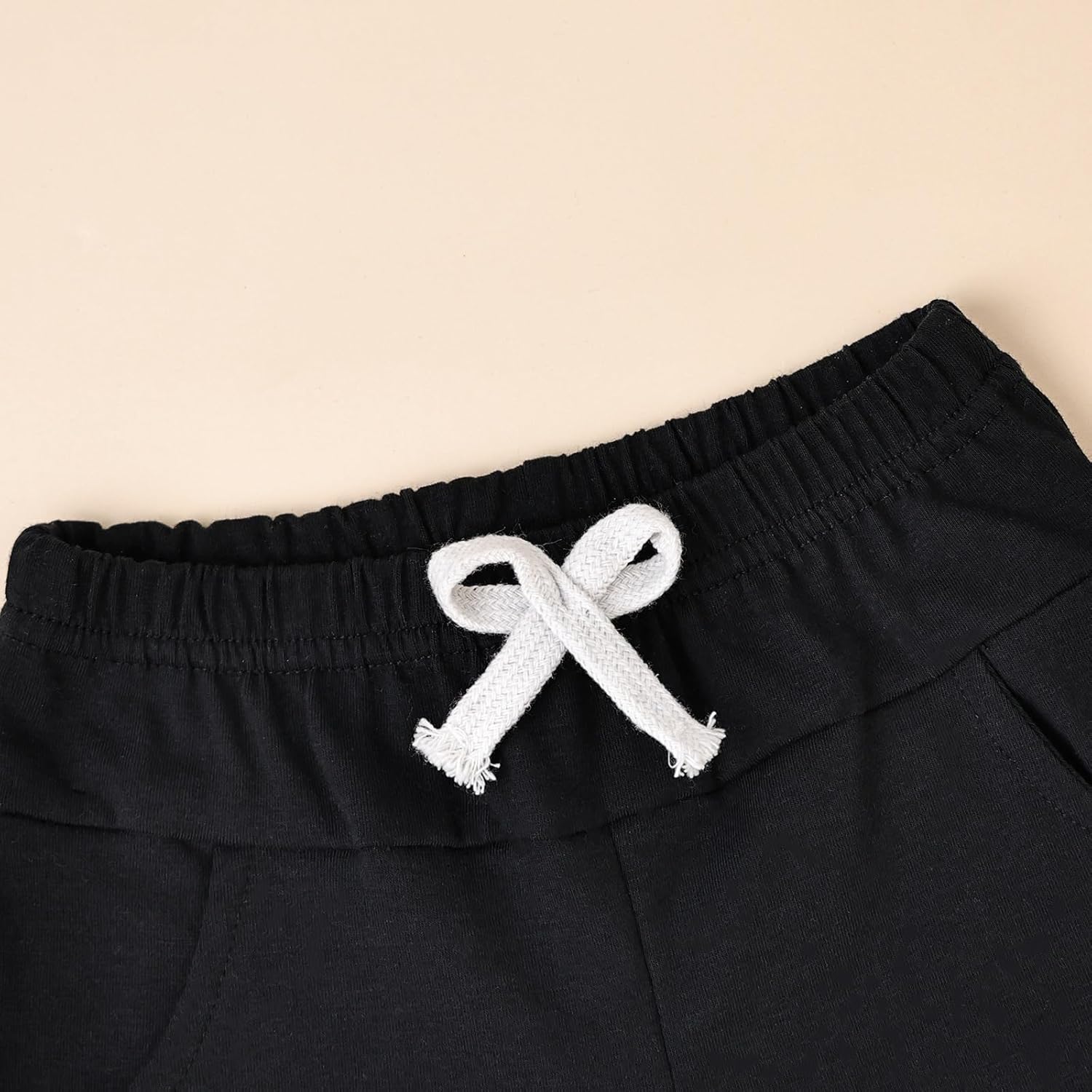 • ✯ Fashion Stitching and Contrasting Color Design: The top t-shirt has a cute little pocket in the front and comes in a variety of contrast colors, giving your sweet toddler baby boy a stylish look this summer. The solid shorts feature a high-quality elastic waistband and convenient side pockets, perfect for your little guys to put things such as while on the go.