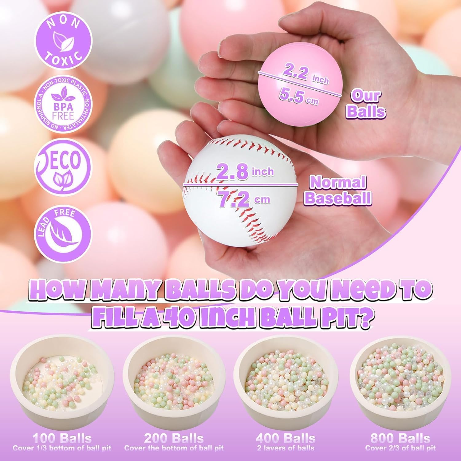 - SIZE- 2.17 inches palstics ball size for baby's little hands and prevent suffocation by accidental swallow.