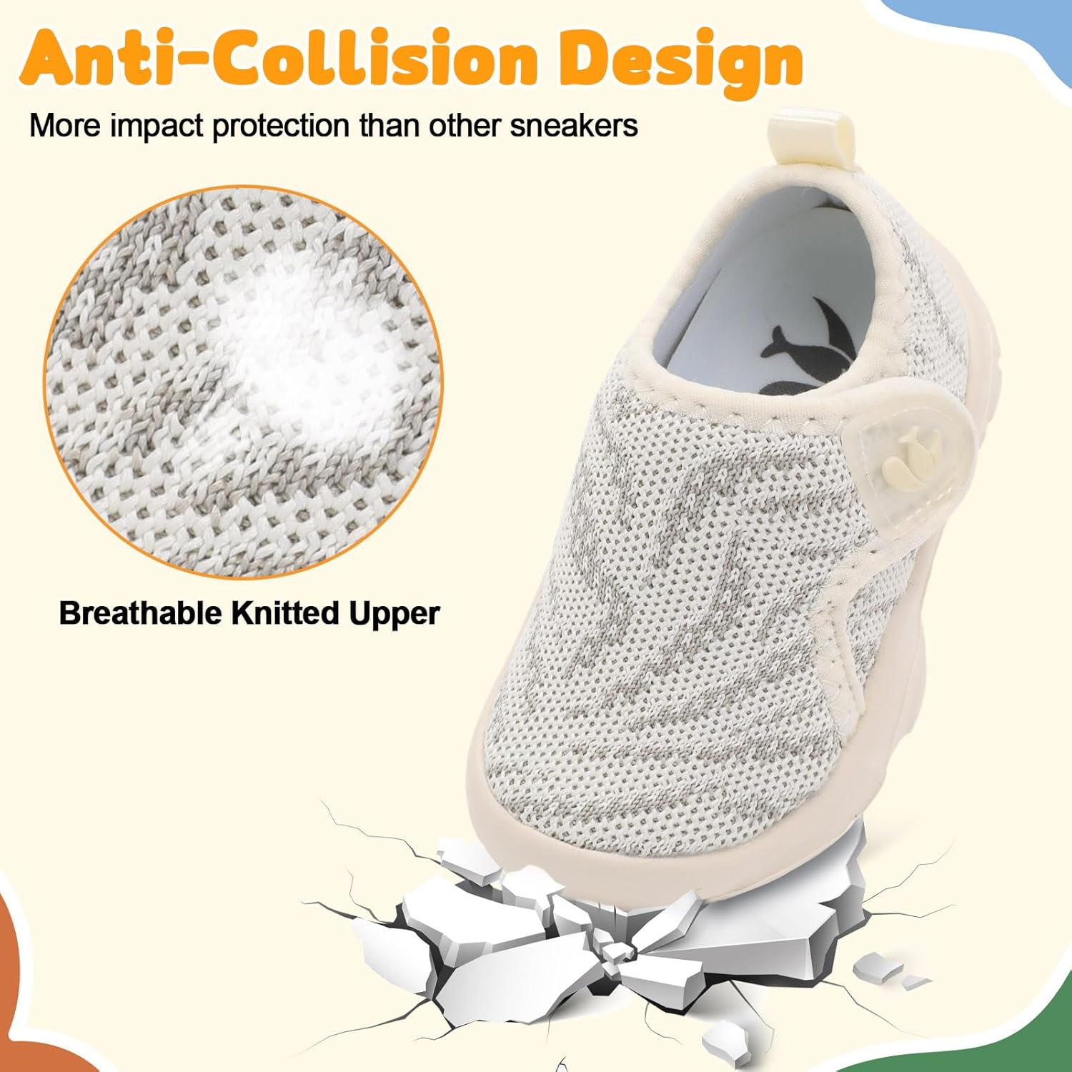 • Upper:Knitted Mesh Upper offers comfort and air permeability,has excellent breathability,moisture wicking function,and keep baby's feet dry and odorless.Super Soft,Breathable and Comfortable fit all the year